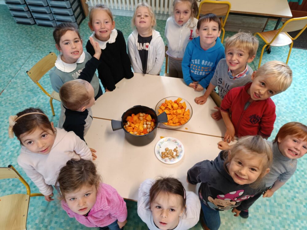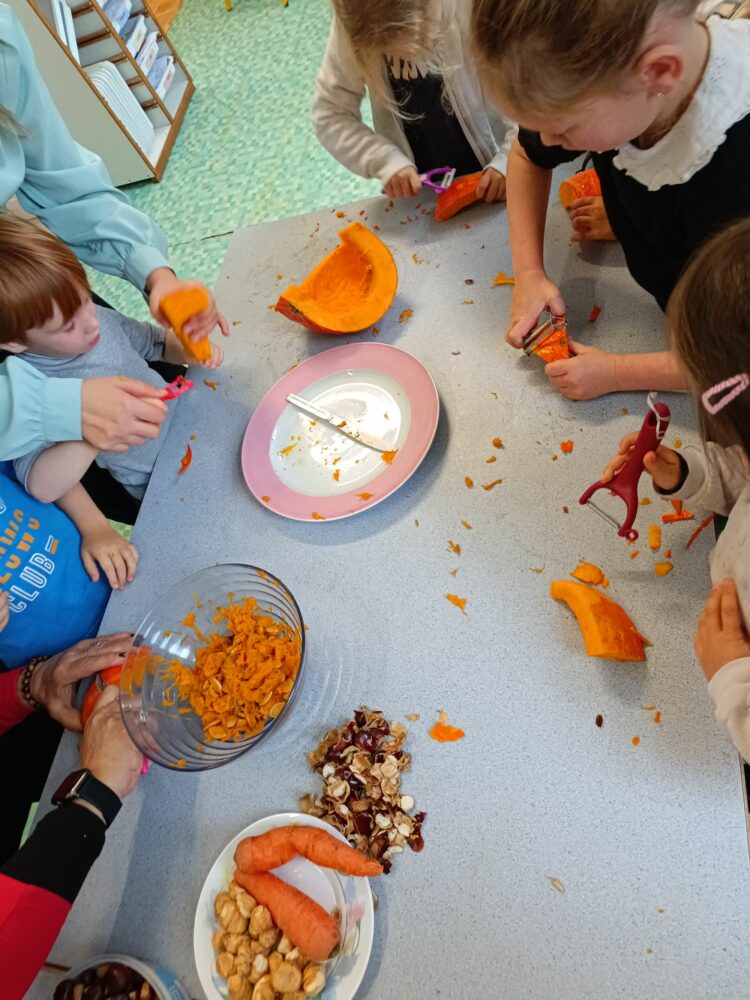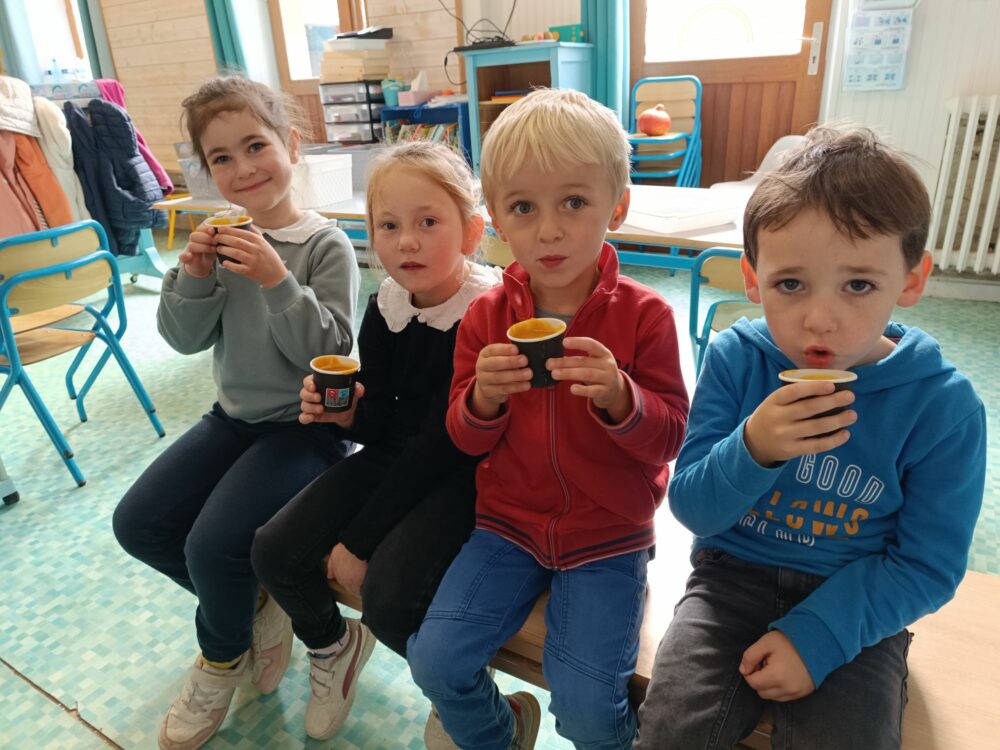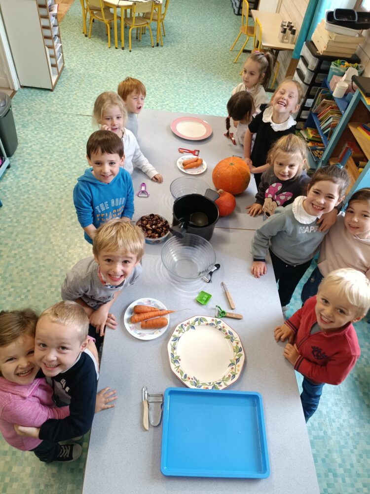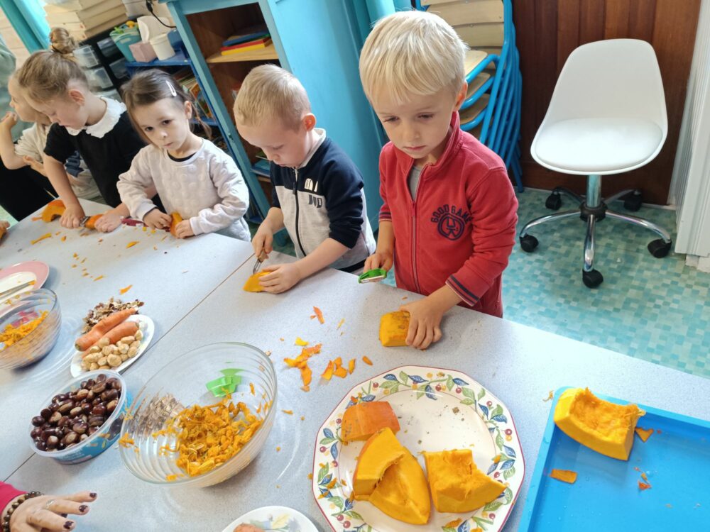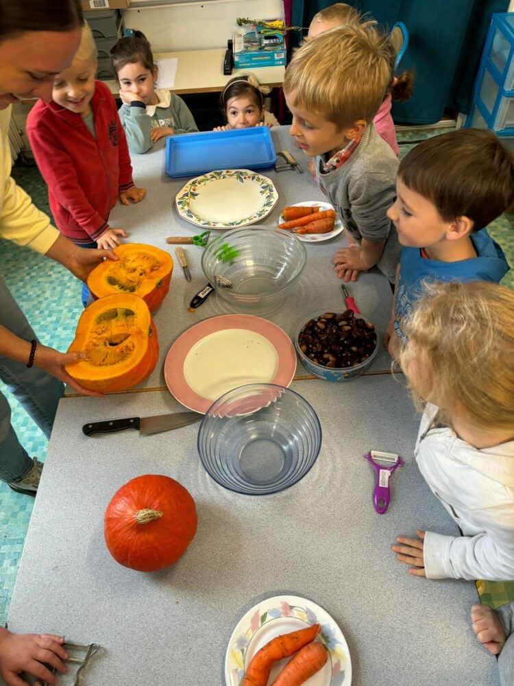 - Jour 2 : Place aux saveurs d’automne avec une soupe de potiron, carottes et châtaignes (ramassées par les enfants !).